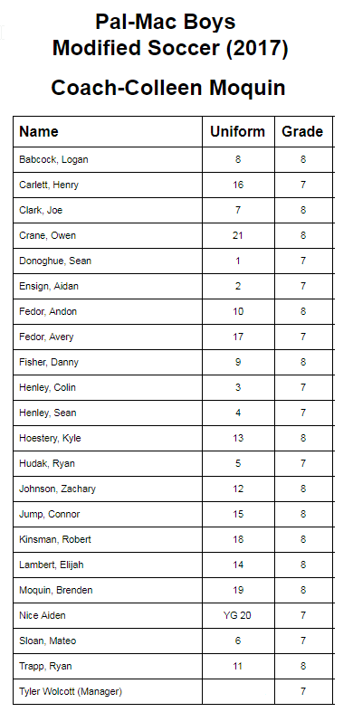 Fall 2017 Pal-Mac Red Raiders Soccer
