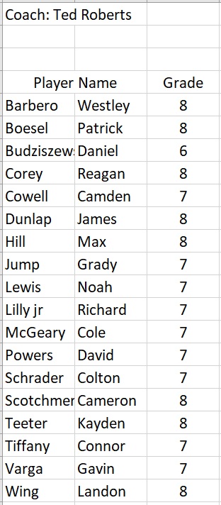 | Head Coach: | Ted Roberts |